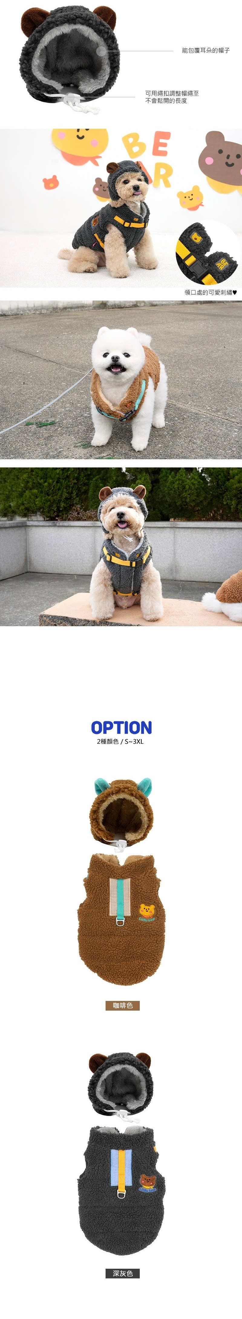 ♡ 除了外套,還有一頂小熊耳朵的可調式帽子🐻