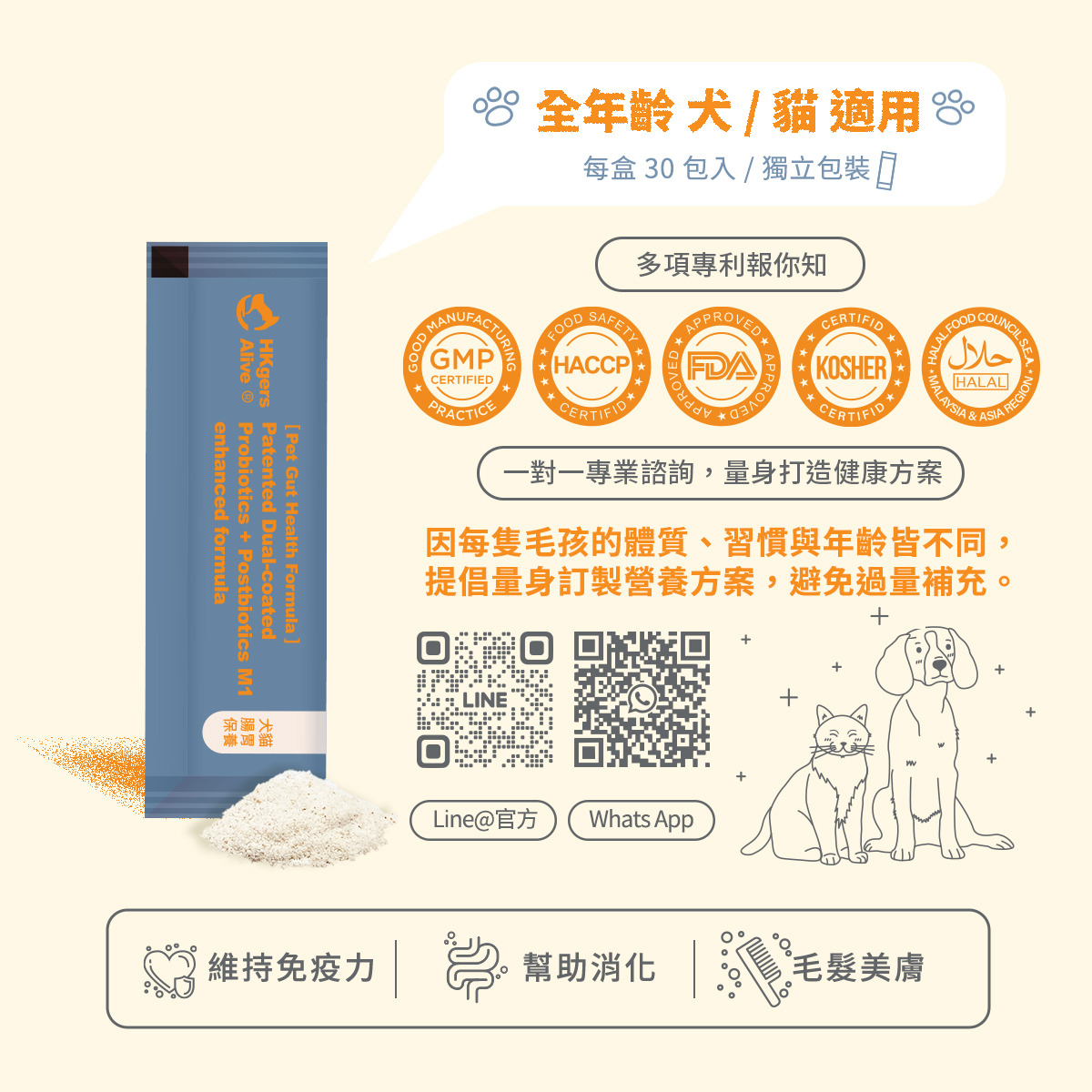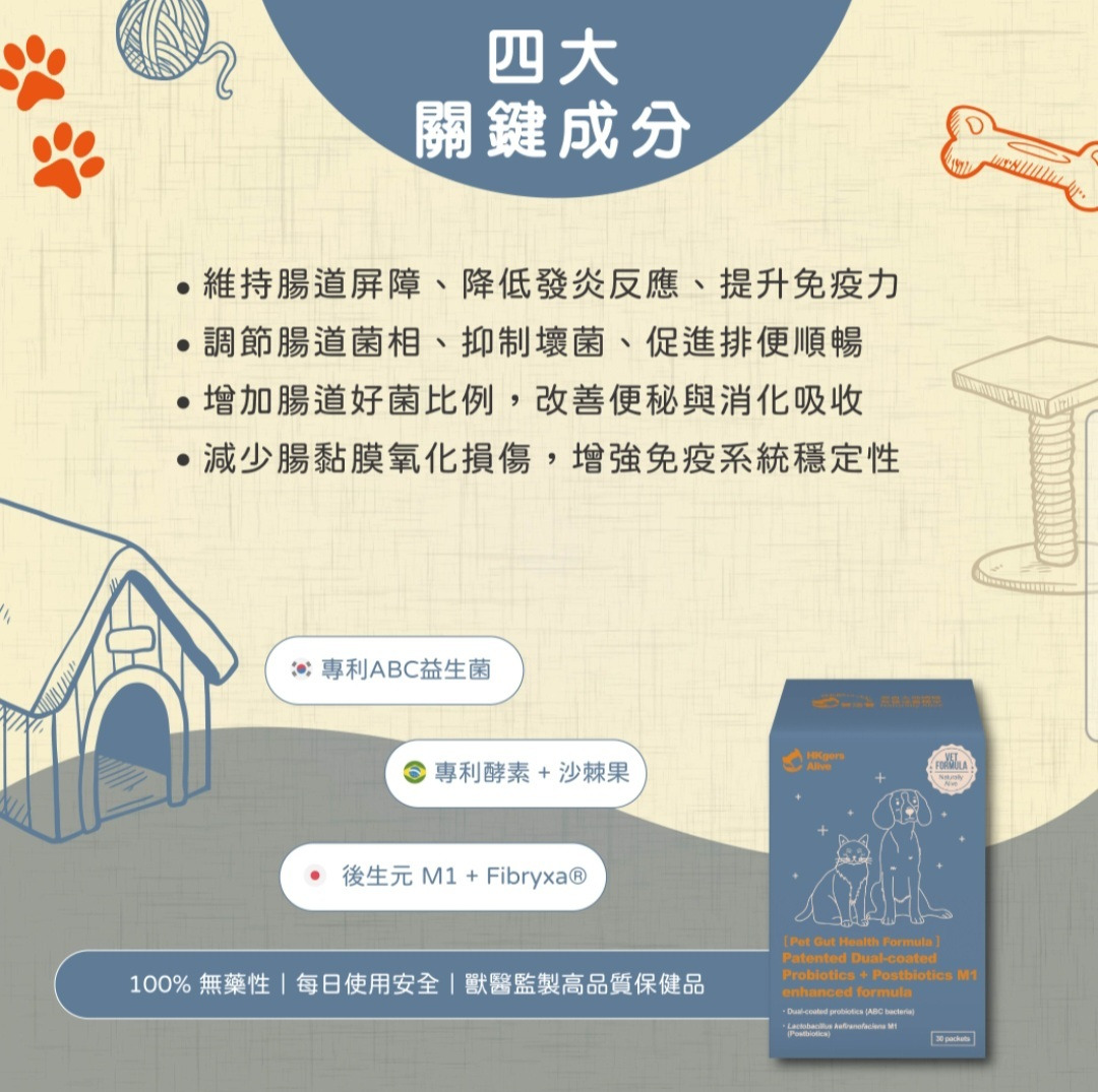 <全面升級版> 營活著-【犬貓腸胃】專利包埋益生菌+後生元M1強化配方