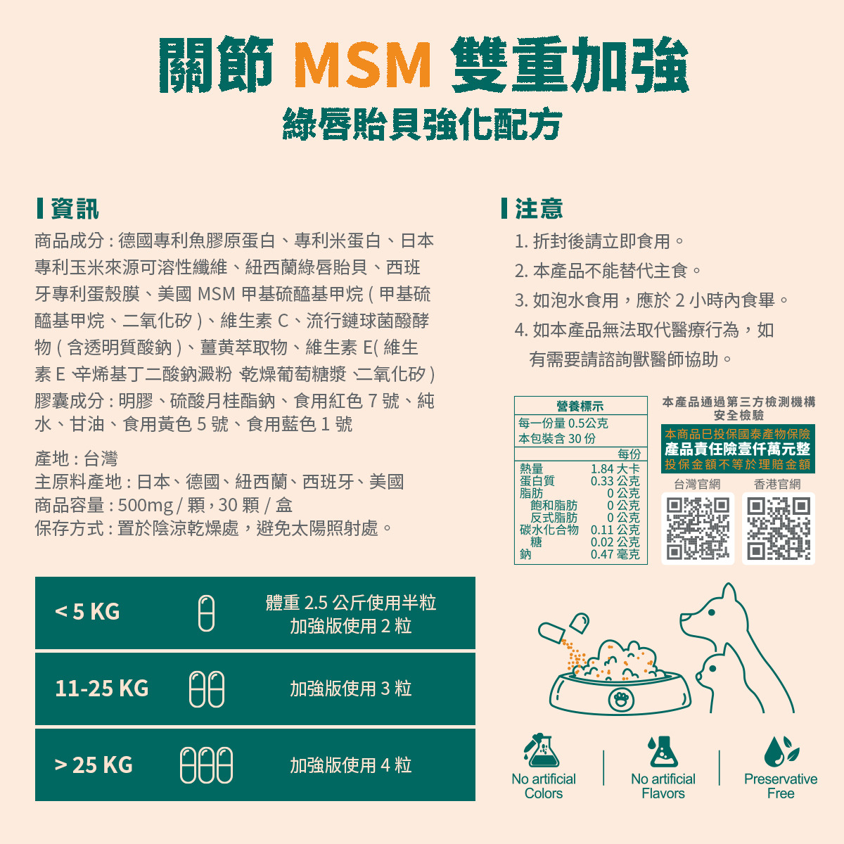 <全面升級版> 營活著-【多國專利】護關節 MSM+(綠唇貽貝強化配方)