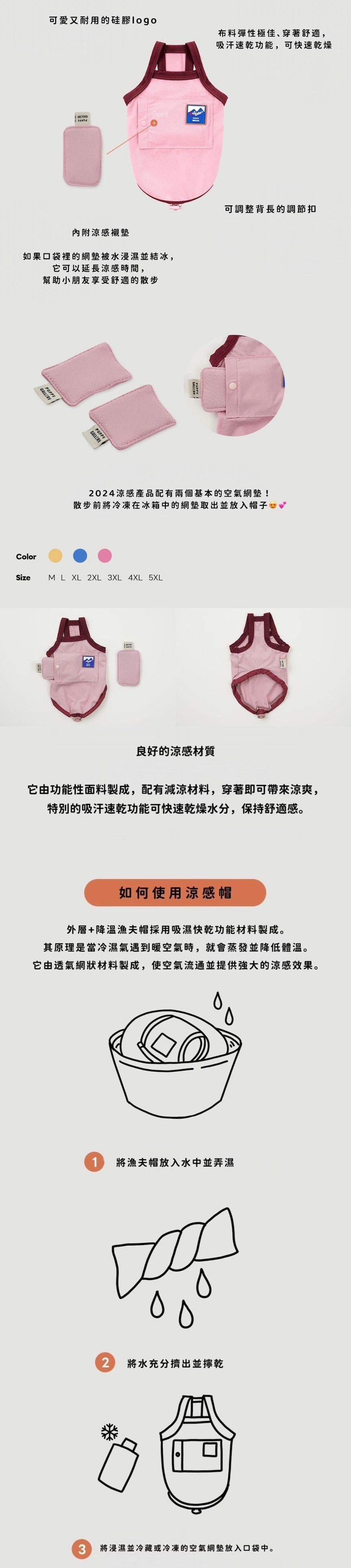 > 散步前從衣服中取出,用水浸濕、冷藏或冷凍後使用,