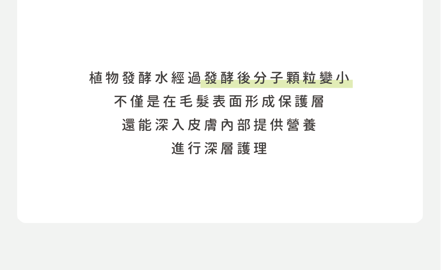 * 主成分:蘿蔔根發酵液(乳酸菌)、甘油、沙棘果發酵液(枯草桿菌)、何首烏根發酵濾液(枯草桿菌)、大藻萃取物/火山灰發酵液(枯草桿菌)、魚腥草葉發酵液(乳酸菌)、山竹果皮發酵液(乳酸菌)、人參果/葉/根發酵液(乳酸菌)、木瓜發酵液(乳酸菌)、米糠發酵液(乳酸菌)、白樺樹枝發酵液(乳酸菌)、甘蔗/茶樹葉/發酵液(乳酸菌)、酵母菌萃取物、薏苡仁發酵液(酵母菌)、丁二醇、積雪草萃取物、洋甘菊花萃取物、橄欖葉萃取物、無患子果實萃取物、1,2-己二醇、猴麵包樹果實萃取物、辛基十二醇-16、羥基苯乙酮、檸檬酸鈉、EDTA二鈉、義大利蠟菊萃取物、尿囊素、香茅油、迷迭香葉油、香茅油、苦橙花油、墨西哥杜松油、薰衣草花/葉/莖油、廣藿香油