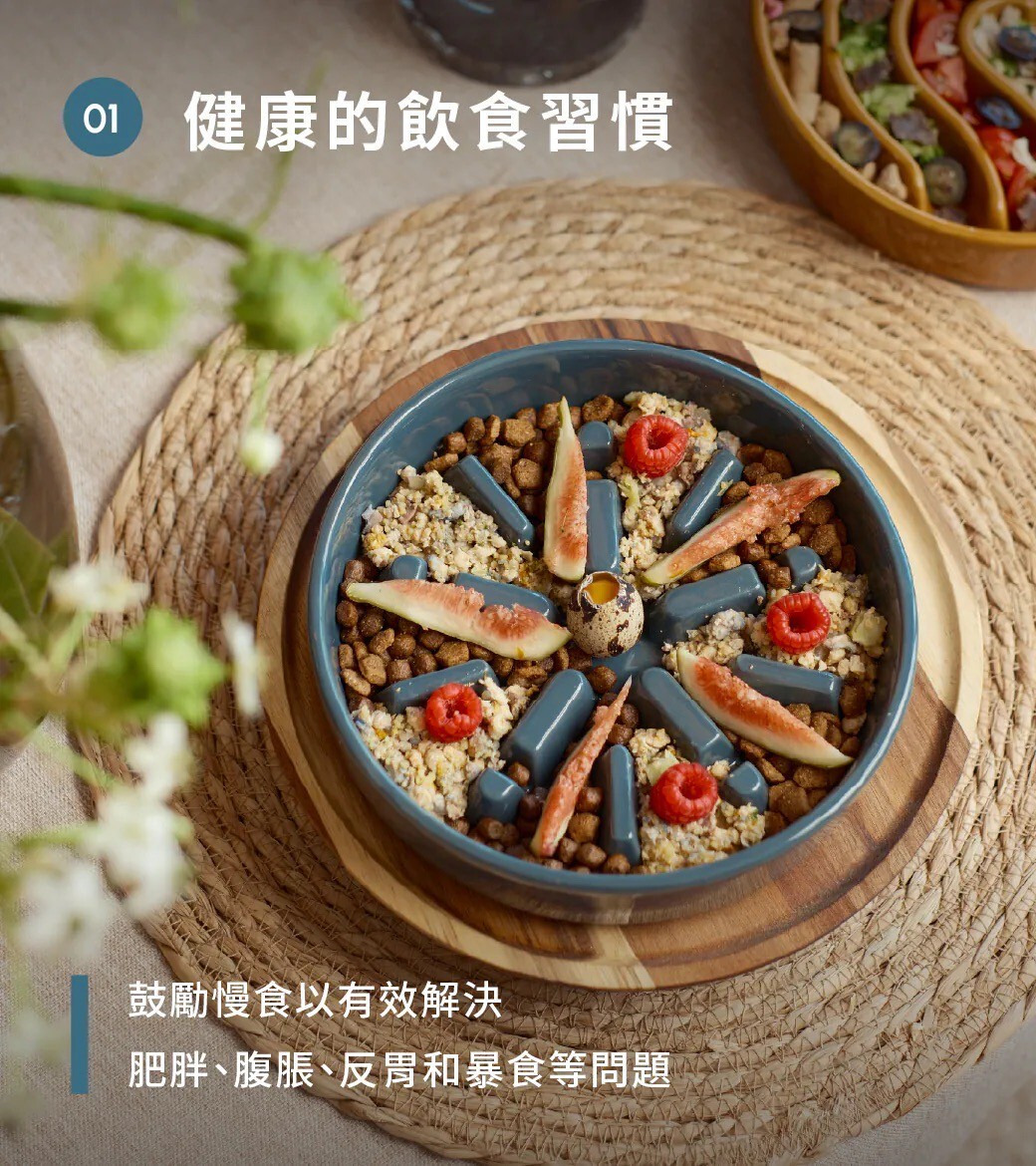 結合餐食愉悅與健康,鼓勵緩慢進食,陶瓷材質易清潔且安全,更提供可選木質架高底座,改善進食方式,全面考慮舒適和健康體驗